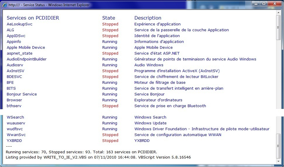 WMI et requête pour récupérer la liste des services de l'ordinateur