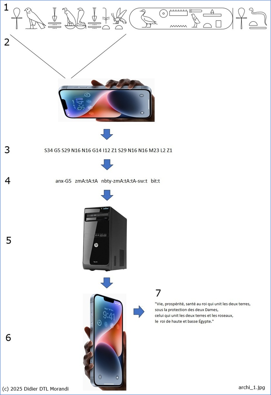 Pour les phases 3 et 7, nous pensons à l'outil Hieroglyphs AI de Evgeniy & Alexander Sulimov